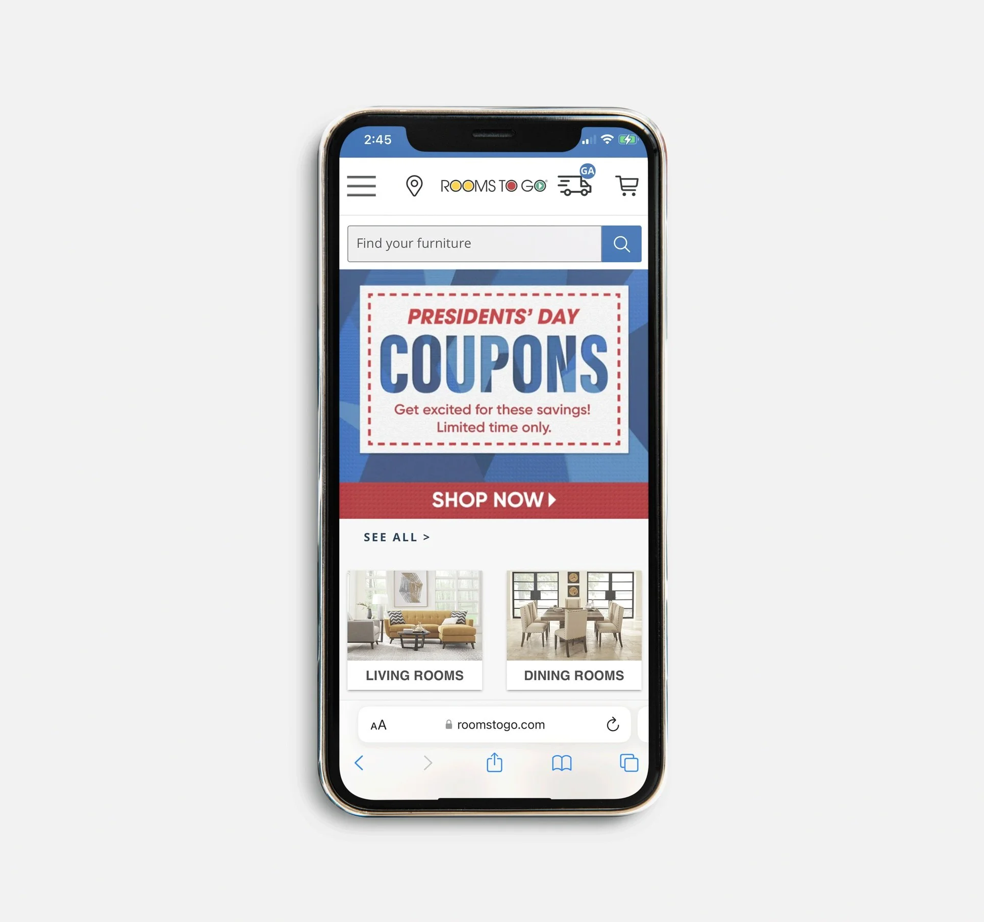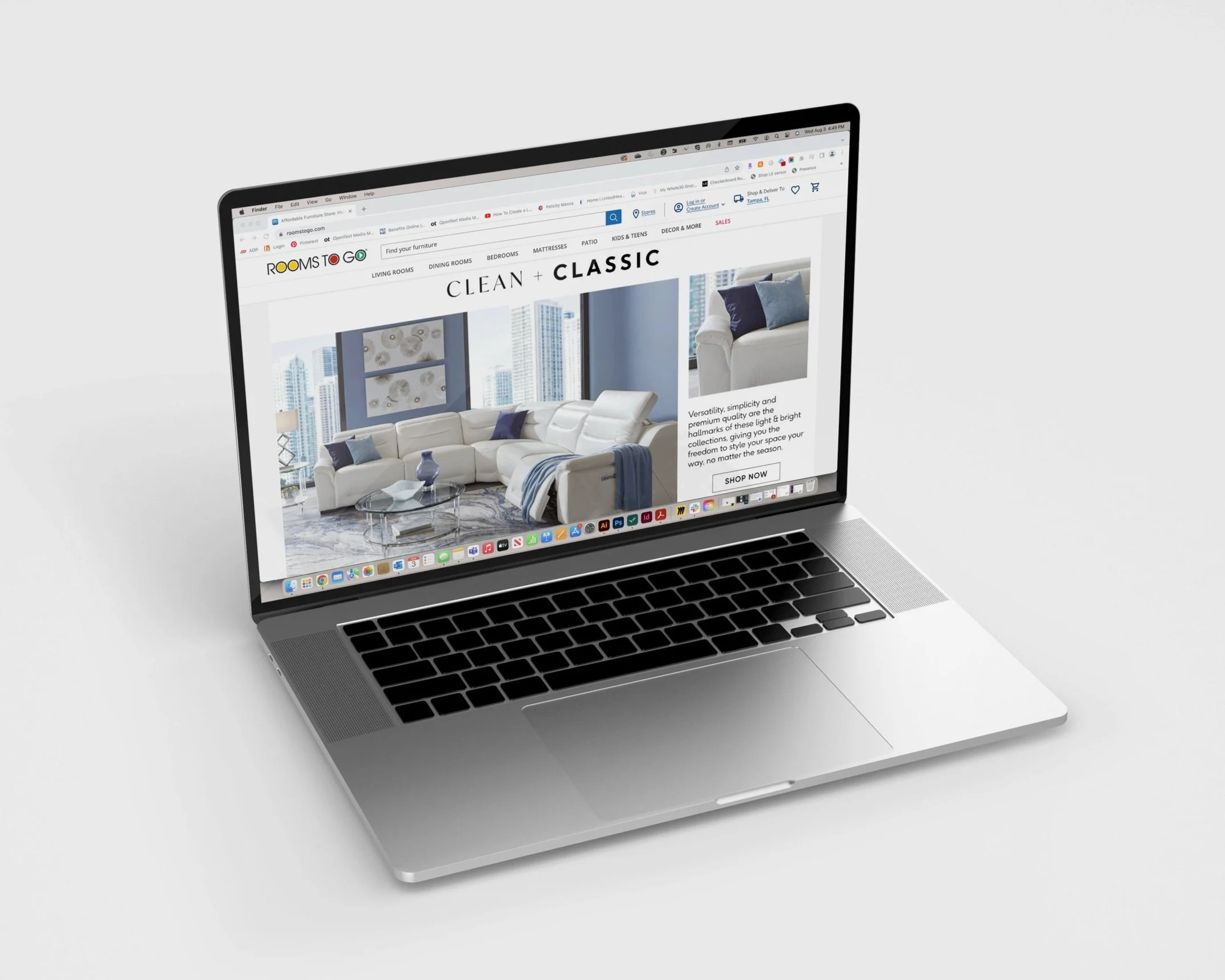 This page includes some examples of work that I created as a Graphic Designer on the Senior Creative Concept and Development team at Rooms To Go. My work included web design, marketing campaigns, tv graphics, and influencer packaging. This work was completed using Photoshop, Illustrator, InDesign, and Figma, and designs were a mixture of individual conception and collaboration with other members of my team and the digital marketing department.